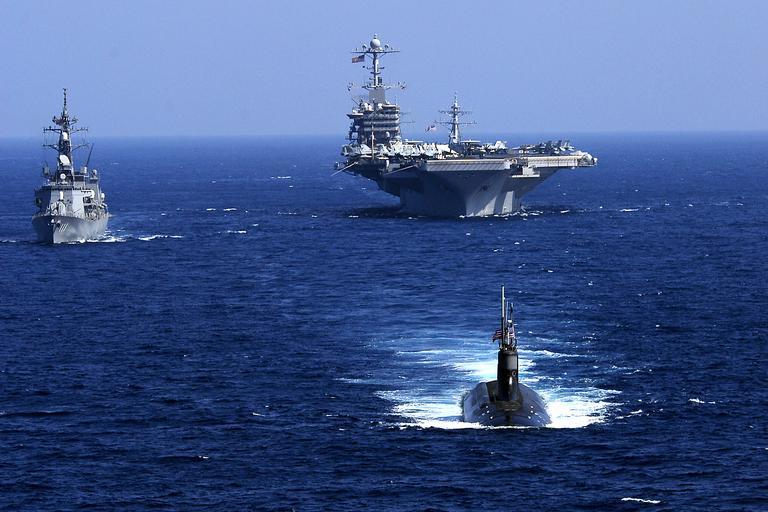 | Keywords: USS Seawolf (SSN-21) with carrier, japanese destroyer.jpg 090212-N-6538W-029 PACIFIC OCEAN The Seawolf-class submarine USS Seawolf SSN 21 leads the Japan Maritime Self-Defense Force destroyer JS Oonami DD 111 left and the Nimitz-class aircraft carrier USS John C Stennis CVN 74 after a successful undersea warfare exercise involving the John C Stennis Carrier Strike Group Japan Maritime Self-Defense Force and other naval vessels operating in the U S 7th Fleet area of responsibility John C Stennis is on a scheduled six-month deployment to the western Pacific Ocean http //www navy mil/view_image asp id 68800 Feb 12 2009 U S Navy photo by Mass Communication Specialist 3rd Class Walter M Wayman/Released PD-USGov-Military-Navy USS Seawolf SSN-21 JS Ōnami DD-111 General views of USS John C Stennis CVN-74 Front views of ships |