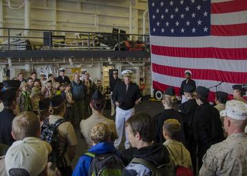 Keywords: USS Somerset (LPD 25) Arrives At Seattle Seafair Fleet Week 160802-N-CC789-076.jpg en EVERETT Wash Aug 2 2016 Cmdr William Sherrod executive officer of amphibious transport dock ship USS Somerset LPD 25 greets local Navy Junior Reserve Officers Training Corps NJROTC cadets Sea Cadets and Boys Scouts in the ship s hangar deck during a ship ride from Everett to Seattle as part of Seattle Seafair Fleet Week Seafair is an annual celebration of the sea services wherein Sailors Marines and Coast Guardsmen from visiting U S Navy and Coast Guard ships and ships from Canada make the city a port of call U S Navy photo by Mass Communication Specialist 1st Class Vladimir Ramos/Released <br>Unit USS SOMERSET LPD 25 2016-08-02 Petty Officer 1st Class VLADIMIR RAMOS https //www dvidshub net/image/2764165/uss-somerset-lpd-25-arrives-seattle-seafair-fleet-week 160802-N-CC789-076 2016-08-03 03 18 SEATTLE WA US PD-USGov-Military-Navy USS Somerset LPD-25 Images from DoD uploaded by FĂŚ |