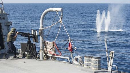 Keywords: USS STOUT (DDG 55) DEPLOYMENT 2016 161015-N-GP524-048.jpg en 161015-N-GP524-048 ARABIAN GULF Oct 15 2016 Petty Officer 2nd Class Jesus Salazar fires a 50-caliber machine gun from aboard the guided-missile destroyer USS Stout DDG 55 during a live-fire exercise Salazar serves as a personnel specialist on board Stout and is also a member of the small craft attack team Stout deployed as part of the Eisenhower Carrier Strike Group is supporting maritime security operations and theater security cooperation efforts in the U S 5th Fleet area of operations U S Navy photo by Petty Officer 3rd Class Bill Dodge Unit Navy Media Content Services DVIDS Tags SAR; Search and Rescue; formation; ocean; transit; Bahrain; RAS; USNS Pecos ; GQ; general quarters; Arleigh Burke-class; America; underway; CIWS; 6th Fleet; guided-missile destroyer; Manama ; forward deployed; Memorial Day; USS Stout DDG 55 ; ship; SUEZ CANAL; Navy; COMREL; Sailor; community relations; destroyer; replenishment-at-sea; U S Navy; 5th Fleet; deployment; MC; Stout; USS Stout; DDG 55; Lt Michael Murphy; NMCS; DVIDS Bulk Import; Mass Communication Specialist 3rd Class Bill Dodge; MC3 Bill Dodge; Murph Challenge; ARGONAUT 2016; Sailors giving back 2016-10-15 Petty Officer 3rd Class William Dodge https //www dvidshub net/image/2927310/uss-stout-ddg-55-deployment-2016 161015-N-GP524-048 2016-10-18 00 31 PERSIAN GULF PD-USGov-Military-Navy Manama USS Stout DDG-55 Images from DoD uploaded by Fæ |