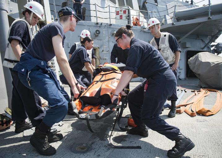 Keywords: USS STOUT (DDG 55) DEPLOYMENT 2016 160924-N-GP524-745.jpg en 160924-N-GP524-745 ARABIAN GULF Sept 24 2016 The stretcher bearer team aboard the guided-missile destroyer USS Stout DDG 55 conducts training on assisting an injured person during a man overboard training evolution Stout deployed as part of the Eisenhower Carrier Strike Group is supporting maritime security operations and theater security cooperation efforts in the U S 5th Fleet area of operations U S Navy photo by Mass Communication Specialist 3rd Class Bill Dodge Unit Navy Media Content Services DVIDS Tags SAR; Search and Rescue; formation; ocean; transit; Bahrain; RAS; USNS Pecos ; GQ; general quarters; Arleigh Burke-class; America; underway; CIWS; 6th Fleet; guided-missile destroyer; Manama ; forward deployed; Memorial Day; USS Stout DDG 55 ; ship; SUEZ CANAL; Navy; COMREL; Sailor; community relations; destroyer; replenishment-at-sea; U S Navy; 5th Fleet; deployment; MC; Stout; USS Stout; DDG 55; Lt Michael Murphy; NMCS; DVIDS Bulk Import; Mass Communication Specialist 3rd Class Bill Dodge; MC3 Bill Dodge; Murph Challenge; ARGONAUT 2016; Sailors giving back 2016-09-24 Petty Officer 3rd Class William Dodge https //www dvidshub net/image/2884332/uss-stout-ddg-55-deployment-2016 160924-N-GP524-745 2016-09-28 00 20 PERSIAN GULF PD-USGov-Military-Navy Manama USS Stout DDG-55 Images from DoD uploaded by Fæ |