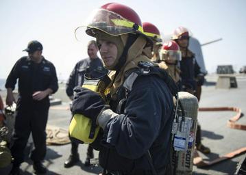 Keywords: USS STOUT (DDG 55) DEPLOYMENT 2016 161014-N-GP524-093.jpg en 161014-N-GP524-093 ARABIAN GULF Oct 14 2016 Petty Officer 2nd Class Michael Christensen operates a navy firefighter ™s thermal imager before entering a space during a general quarters drill aboard the guided-missile destroyer USS Stout DDG 55 Christensen serves as a machinery repairman aboard Stout and maintains all mechanical systems on board Stout deployed as part of the Eisenhower Carrier Strike Group is supporting maritime security operations and theater security cooperation efforts in the U S 5th Fleet area of operations U S Navy photo by Petty Officer 3rd Class Bill Dodge <br>Unit Navy Media Content Services 2016-10-14 Petty Officer 3rd Class William Dodge https //www dvidshub net/image/2927430/uss-stout-ddg-55-deployment-2016 161014-N-GP524-093 2016-10-18 00 35 PERSIAN GULF PD-USGov-Military-Navy USS Stout DDG-55 Images from DoD uploaded by Fæ |