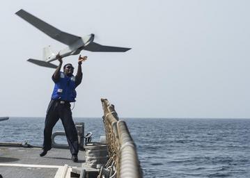 Keywords: USS STOUT (DDG 55) DEPLOYMENT 2016 160727-N-GP524-137.jpg en 160727-N-GP524-137 ARABIAN GULF July 27 2016 Electronics Technician 3rd Class Dale Young launches a RQ-20A Puma AE All Environment unmanned aircraft system from the flight deck of USS Stout DDG 55 Stout deployed as part of the Eisenhower Carrier Strike Group is supporting maritime security operations and theater security cooperation efforts in the U S 5th Fleet area of operations U S Navy photo by Mass Communication Specialist 3rd Class Bill Dodge/Released Unit Navy Media Content Services DVIDS Tags SAR; Search and Rescue; formation; ocean; transit; Bahrain; RAS; USNS Pecos ; GQ; general quarters; Arleigh Burke-class; America; underway; CIWS; 6th Fleet; guided-missile destroyer; Manama ; forward deployed; Memorial Day; USS Stout DDG 55 ; ship; SUEZ CANAL; Navy; COMREL; Sailor; community relations; destroyer; replenishment-at-sea; U S Navy; 5th Fleet; deployment; MC; Stout; USS Stout; DDG 55; Lt Michael Murphy; NMCS; DVIDS Bulk Import; Mass Communication Specialist 3rd Class Bill Dodge; MC3 Bill Dodge; Murph Challenge; ARGONAUT 2016; Sailors giving back 2016-07-27 Petty Officer 3rd Class William Dodge https //www dvidshub net/image/2766471/uss-stout-ddg-55-deployment-2016 160727-N-GP524-137 2016-08-04 00 16 AR PD-USGov-Military-Navy Manama USS Stout DDG-55 Images from DoD uploaded by Fæ |
