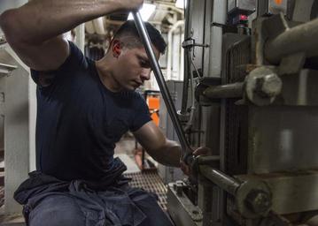 Keywords: USS STOUT (DDG 55) ENGINEERING DEPARTMENT 160707-N-GP524-143.jpg en 160707-N-GP524-143 ARABIAN GULF July 7 2016 Gas Turbine System Technician Mechanical Fireman Mario Orellana conducts maintenance in an engineering space aboard the guided-missile destroyer USS Stout DDG 55 Stout deployed as part of the Eisenhower Carrier Strike Group is supporting maritime security operations and theater security cooperation efforts in the U S 5th Fleet area of operations U S Navy photo by Mass Communication Specialist 3rd Class Bill Dodge/Released Unit Navy Media Content Services DVIDS Tags SAR; Search and Rescue; formation; ocean; transit; Bahrain; RAS; GQ; general quarters; Arleigh Burke-class; America; underway; CIWS; 6th Fleet; guided-missile destroyer; RIA; Manama ; forward deployed; Memorial Day; USS Stout DDG 55 ; ship; SUEZ CANAL; Navy; COMREL; Sailor; community relations; destroyer; replenishment-at-sea; U S Navy; 5th Fleet; deployment; MC; Stout; USS Stout; DDG 55; Lt Michael Murphy; NMCS; DVIDS Bulk Import; Mass Communication Specialist 3rd Class Bill Dodge; MC3 Bill Dodge; Murph Challenge; ARGONAUT 2016; Sailors giving back; Regional Institute of Active Learning 2016-07-07 Petty Officer 3rd Class William Dodge https //www dvidshub net/image/2715939/uss-stout-ddg-55-engineering-department 160707-N-GP524-143 2016-07-12 00 00 PERSIAN GULF PD-USGov-Military-Navy Manama USS Stout DDG-55 Images from DoD uploaded by Fæ |