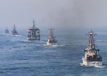Keywords: USS STOUT (DDG 55) IRAQI NAVY BILATERAL EXERCISE DEPLOYMENT 2016 160815-N-GP524-351.jpg en 160815-N-GP524-351 ARABIAN GULF Aug 15 2016 From left to right the Iraqi navy Swift Boat P-311 the U S Navy Cyclone-class coastal patrol ship USS Monsoon PC 4 the Iraqi navy Al Basra-class offshore support vessel Al Basra OSV 401 the U S Coast Guard Island-class patrol cutters USCGC Wrangell WPB 1332 and USCGC Monomoy WPB 1326 transit the Arabian Gulf with the U S Navy guided-missile destroyer USS Stout DDG 55 not shown as part of a Commander Task Force 55 bilateral exercise The U S participates in bilateral exercises with partner nations routinely to build and strengthen interoperability throughout the region Commander Task Force 55 controls surface forces including U S Navy patrol crafts and U S Coast Guard patrol boats throughout the U S 5th Fleet area of operations U S Navy photo by Mass Communication Specialist 3rd Class Bill Dodge Unit Navy Media Content Services DVIDS Tags SAR; Search and Rescue; formation; ocean; transit; Bahrain; RAS; GQ; general quarters; Arleigh Burke-class; Iraqi navy; America; underway; CIWS; 6th Fleet; guided-missile destroyer; Manama ; forward deployed; Memorial Day; Bilateral exercise; USS Stout DDG 55 ; ship; SUEZ CANAL; Navy; COMREL; Sailor; community relations; destroyer; replenishment-at-sea; Commander ; U S Navy; 5th Fleet; deployment; MC; Stout; USS Stout; DDG 55; Lt Michael Murphy; Al Basra; Task Force 55; CTF 55; NMCS; DVIDS Bulk Import; Mass Communication Specialist 3rd Class Bill Dodge; MC3 Bill Dodge; Murph Challenge; ARGONAUT 2016; Sailors giving back; OSV 401; Iraqi navy Swift Boat P-311; P-311 2015-08-15 Petty Officer 3rd Class William Dodge https //www dvidshub net/image/2803296/uss-stout-ddg-55-iraqi-navy-bilateral-exercise-deployment-2016 160815-N-GP524-351 2016-08-19 00 11 PERSIAN GULF PD-USGov-Military-Navy Manama USS Stout DDG-55 Images from DoD uploaded by Fæ |