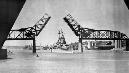 | Keywords: USS Toledo (CA-133) at Portland, Oregon, in June 1955.jpg The U S Navy heavy cruiser USS Toledo CA-133 visiting Portland Oregon USA on occasion of the 47th anniversary of the Rose Festival in June 1955 Toledo is passing the Broadway Bridge on the Willamette River U S Navy photo http //www navysite de/cruisebooks/ca133-55/084 htm from the http //www navysite de/cruisebooks/ca133-55/index_006 htm USS Toledo CA-133 1955-1956 cruise book available at http //navysite de/cruisebooks/index html Navysite de ca 1955-06-08 USN PD-USGov-Military-Navy USS Toledo CA-133 Broadway Bridge Portland during a bascule span opening |