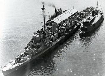 Keywords: USS Wingfield (DE 194).jpg en 1946 Aerial view of Wingfield at anchor during an ammo off load at the Earle Naval Ammunition Depot Leonardo NJ A tug and a barge belonging to Amboy Towing are on the starboard side with a second unidentified tug-like personnel ferry along the port side U S Navy Photo N-11105 http //www navsource org/archives/06/194 htm U S Navy Photo N-11105 1946 PD-USGov-Military-Navy USS Wingfield DE-194 |