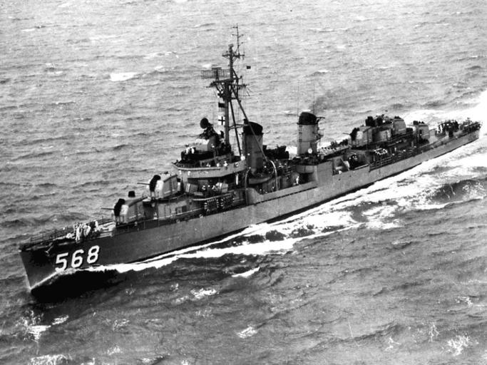 Keywords: USS Wren (DD-568) underway in the 1950s.jpg The U S Navy destroyer USS Wren DD-568 underway circa the mid 1950s U S Navy photo http //www navsource org/archives/05/pix2/0556819 jpg NH 107257 from http //www navsource org/archives/05/568 htm Navsource org s 1950 USN PD-USGov-Military-Navy USS Wren DD-568 |