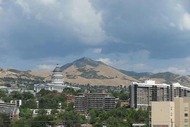 Keywords: Utah State Capitol and front environs - 23 August 2012.JPG Utah State Capitol as seen from the parking garage at the Triad Center 2012-08-23 own Mangoman88 40 46 16 69 N 111 54 7 85 W region US_heading ENE cc-zero Uploaded with UploadWizard Utah State Capitol Triad Center