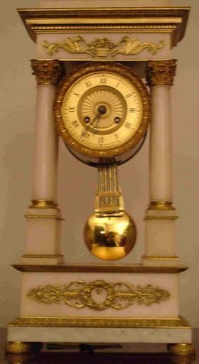 Keywords: Uurwerk met compensatieslinger.jpg en Clock with compensating pendulum own Handige Harrie 2010-12-27 pd Cc-zero 19th-century desk clocks Portico Clocks