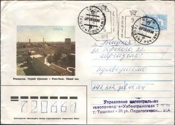 Keywords: Uzbekistan letter 1993 01.jpg ru П овизо ная пе еоценка Ташкента 1993 года на художественном ма ки ованном конве те Узбекистана en Provisionally re-evaluation of Tashkent in 1993 on the Art pre-stamped envelopes of Uzbekistan Personal collection Scanned and processed by Leonid 2 2011-06-26 GFDL cc-by-3 0 PD-UZ-exempt PD-ineligible Post of Uzbekistan |