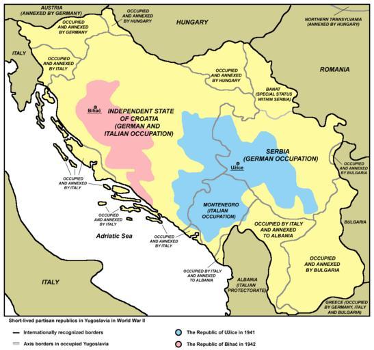 | Keywords: Užice and Bihać Republics.png en Short-lived partisan republics in Yugoslavia in World War II the Republic of Užice in 1941 and the Republic of Bihać in 1942 sh Kratkotrajne partizanske republike u Jugoslaviji u vreme Drugog svetskog rata Užička republika 1941 i Bihaćka republika 1942 own PANONIAN 2012 Cc-zero References Borders of the Republic of Užice are made in accordance with this source Povijesni atlas za osnovnu školu Kartografija - Tlos - Zagreb Zagreb 1975 authors of the atlas were Dr Josip Lučić and Prof Blagota Drašković; associates were Prof Ivan Kampuš Prof Željka Kargačin Prof Ivo Makek Prof Olga Salzer and Prof Tomaž Weber; editors were Prof Zdravko Prelčec and Mr Dragutin Pavličević; reviewers were Prof Dr Igor Karaman and Dr Ivan Jelić Borders of the Republic of Bihać are made in accordance with this source Denis Šehić - Demir Šehić Istorijski atlas sveta Beograd 2007 Borders of Axis partition of Yugoslavia are made in accordance with these sources Istorijski atlas Geokarta Beograd 1999 Školski istorijski atlas Zavod za izdavanje udžbenika SR Srbije Beograd 1970 Povijesni atlas Učila - Zagreb Zagreb 1971 Denis Šehić - Demir Šehić Istorijski atlas sveta Beograd 2007 The Times History of Europe Times Books London 2002 Richard Overy The Times History of the 20th Century Times Books London 2004 The Times Atlas svjetske povijesti Cankarjeva založba Ljubljana - Zagreb 1986 Tim Džuda Srbi - istorija mit i razaranje Jugoslavije Beograd 2003 Džon R Lempi Jugoslavija kao istorija Beograd 2004 Fransisko Veiga Balkanska zamka 1804-2001 Beograd 2003 Dr Tomislav Bogavac Nestajanje Srba Niš 1994 Valter Manošek Holokaust u Srbiji Beograd 2007 http //www terra es/personal7/jqvaraderey/194145fc gif http //www svetskirat net/slike/razbijanje/zazbijanje_jugoslavije_1941 jpg http //www marxists org/subject/yugoslavia/images/maps/1941-dismemberment jpg http //www ushmm org/lcmedia/map/lc/image/yug71020 gif http //www srpska-mreza com/MAPS/Yugoslavia/YU-Nazi-division jpg http //www cartoko com/content/wp-content/uploads/2010/05/Yugoslavia_1992_p038_CtryStudy jpg http //www arhivyu gov rs/Data/Images/06_karta_b jpg http //terkepek adatbank transindex ro/kepek/netre/211 gif Maps of Yugoslavia during World War II Maps of Serbia during World War II Maps of Montenegro during World War II Maps of the Independent State of Croatia Maps of the history of Bosnia and Herzegovina in modern times Maps of the history of Republika Srpska Republic of Užice Republic of Bihać |