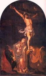 | Keywords: Valdes leal-calvario-sevilla-quinta angustia.jpg La obra representa a Jesucristo crucificado en el Monte Calvario y acompañado por su madre la Virgen María por Santa María Magdalena y por San Juan Evangelista 1659 1660 oil on canvas Size cm 252 410 Institution Iglesia de Santa María Magdalena Sevilla Capilla de la Quinta Angustia http //pintura aut org/SearchProducto Produnum 41735 accession number https //plus google com/photos/112198700172217620091/albums/6104115048748017121/6104115669616468194 authkey CM-3iKrP2JeXOA pid 6104115669616468194 oid 112198700172217620091 PD-old-100 Paintings of Crucifixion of Christ in Spain 17th-century paintings of the Crucifixion of Christ Paintings of Jesus Christ by Juan de Valdés Leal Paintings of Virgin Mary by Juan de Valdés Leal Paintings of apostles by Juan de Valdés Leal Paintings of Christian saints by Juan de Valdés Leal Paintings by Juan de Valdés Leal in the Iglesia de Santa María Magdalena Sevilla |