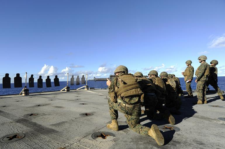 | Keywords: Valiant Shield 2010 DVIDS319779.jpg en Marines from the 31st Marine Expeditionary Unit embarked aboard the amphibious dock landing ship USS Harpers Ferry practice shooting their M-14 carbines and M-16 rifles Harpers Ferry part of the permanently forward-deployed Essex Amphibious Ready Group is on patrol in the western Pacific Ocean participating in Valiant Shield 2010 an integrated joint-training exercise designed to enhance interoperability between U S forces 2010-09-15 Petty Officer 1st Class Richard Doolin https //www dvidshub net/image/319779 100915-N-+++++-249 2010-09-17 07 57 PHILIPPINE SEA AT SEA PD-USGov-Military-Navy 31st Marine Expeditionary Unit Images from DoD uploaded by Fæ |
