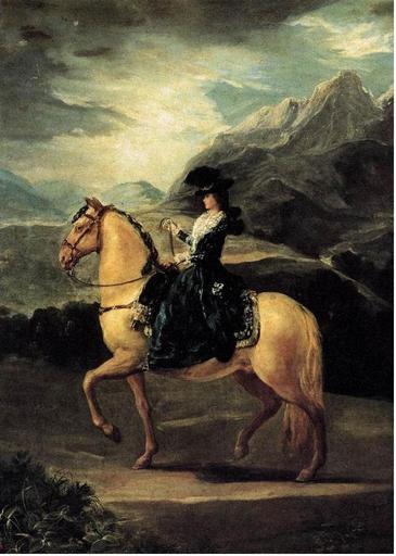 | Keywords: Vallabriga Maria Teresa.jpg María Teresa de Vallabriga 1759-1820 1783 Oil on canvas Institution Uffizi http //www espanolsinfronteras com/Elarteylahistoria00 htm other versions <gallery>Francisco de Goya y Lucientes - Portrait of María Teresa de Vallabriga on Horseback - WGA9990 jpg</gallery> PD-old-100 DEFAULTSORT 1783; MªTeresa de Vallabriga María Teresa de Vallabriga y Rozas by Goya Equestrian portraits by Goya 18th-century portrait paintings in the Uffizi Gallery 1780s paintings in Italy 1783 oil on canvas paintings Portrait 1783 portrait paintings 18th-century oil equestrian portraits of women Riding habit in portrait paintings 18th-century oil on canvas paintings in Italy 18th-century profile portrait paintings of women Horse coat colors Horse riding in Spain Portrait paintings of women wearing hats |