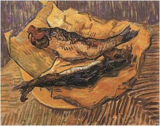 Keywords: Van Gogh Bloaters-on-a-Piece-of-Yellow-Paper-1889.jpg en Still Life Bloaters on a Piece of Yellow Papers Private collection Oil on Canvas 33 x 41cm F510 www vangoghgallery com Vincent Van Gogh 1889 PD-old-100 Paintings by Vincent van Gogh in private collections Herrings in art |