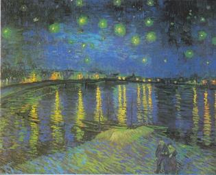 | Keywords: Van Gogh - Sternennacht über der Rhône.jpeg Sternennacht über der Rhône Starry Night over the Rhone oil canvas 72 5 x 92 cm Paris Musée d' Orsay Van Gogh catalogues 574 1592 repro from art book Arles September 1888 Creator Vincent van Gogh PD-old-100 Other versions Starry Night Over the Rhone by Vincent van Gogh |