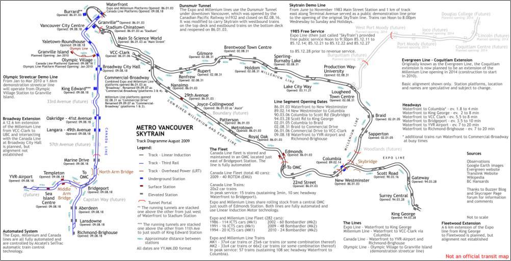 | Keywords: Vancouver SkyTrain track diagram.svg Vancouver SkyTrain track diagram http //forum skyscraperpage com/showthread php t 172865 2009-08-24 http //forum skyscraperpage com/member php u 29005 lightrail Author has given me full permission to publish his work onto Wikimedia Commons under the public domain Public transport maps of Vancouver lightrail |