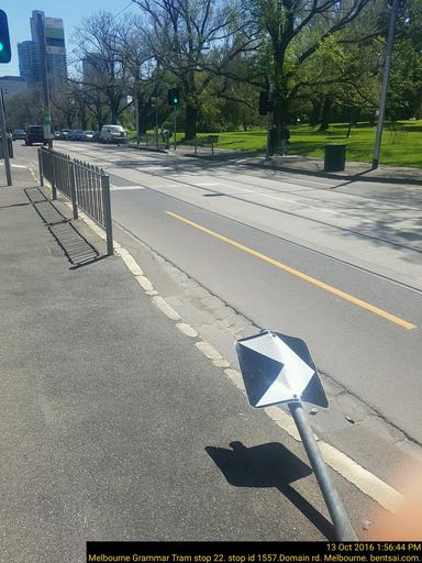 I wish you well. I refer to the attached photo at Melbourne Grammar Tram Stop 22, Stop ID 1557, Domain rd, Melbourne CBD, Victoria Australia.