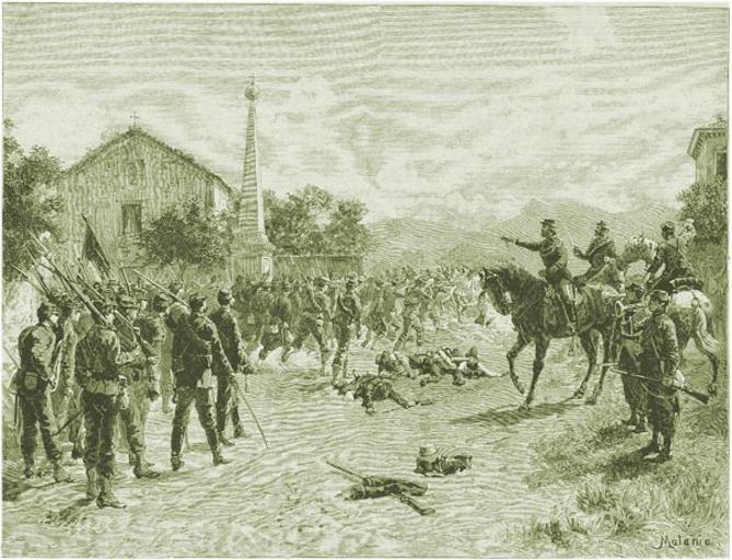 | Keywords: Varese 1859.jpg en Second Italian War of Independence Garibaldi's Hunters of the Alps repel the attack of the Austrian division Urban in the Battle of Varese May 26 1859 Lithograph of the time reduced and modified it Seconda Guerra d'Indipendenza I Cacciatori delle Alpi di Garibaldi respingono l'attacco della Divisione Austriaca del Generale Urban nella Battaglia di Varese il 26 maggio 1859 Litografia dell'epoca ridotta e modificata Francesco Bertolini Storia del Risorgimento italiano F lli Treves Editori Milano 1889 Edoardo Matania 1847 “1929 1889 PD-old Battle of Varese Edoardo Matania Storia d'Italia by Francesco Bertolini 1859 in Italy |