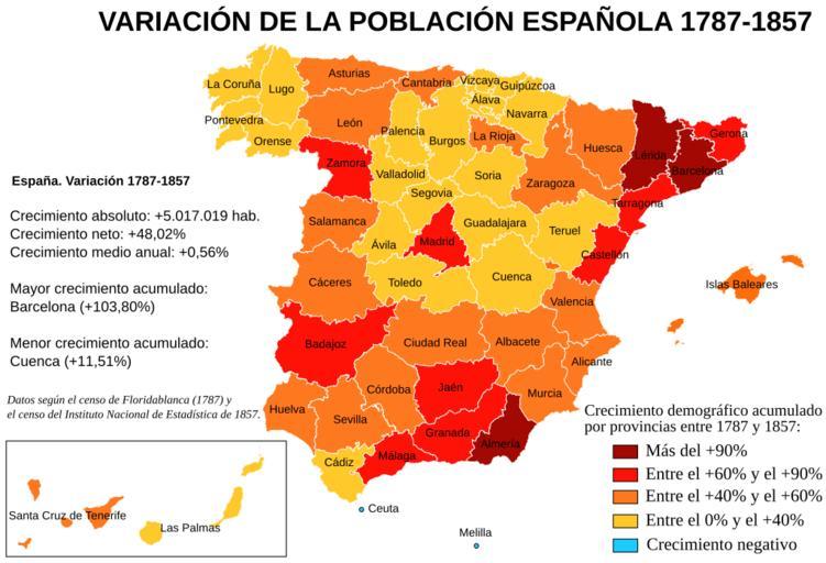 | Keywords: Variación de la población española entre 1787 y 1857.svg Mapa de España con las variaciones de población por provincias actuales en el periodo 1787-1857 según el censo de Floridablanca 1787 y el primer censo del Instituto Nacional de Estadística 1857 Instituto Nacional de Estadística de España Image Evolución Población Provincias España 1787 - 1900 pdf 2007-08 Creado por Rodriguillo tomando como mapa base Image Provinces of Spain svg creado por Emilio Gómez Fernández GFDL Image Variación de la población española entre 1787 y 1857 png Rodriguillo Population maps of Spain 1787 in Spain 1857 in Spain |