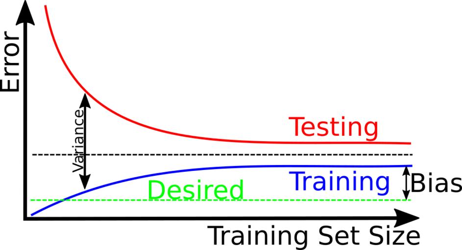 | Keywords: Variance-bias.svg en Visualize the training error and testing error over the amount of available training data The more training data is available the less the variance is The bias is not affected by it de Visualisierung des Trainingsfehlers sowie des Testfehlers über die Anzahl der Trainingsdaten Je mehr Trainingsdaten verfügbar sind desto geringer ist die Varianz Der Bias ist davon nicht betroffen own MartinThoma 2016-02-19 Images by Martin Thoma/Computer Science Inkscape Machine learning Cc-zero |