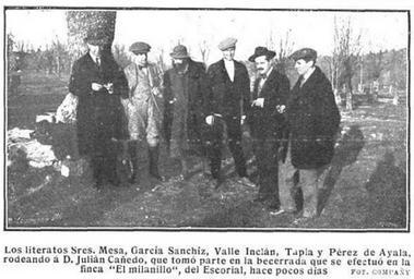 | Keywords: Varios literatos en la finca 'El milanillo', de Compañy.jpg  Mundo Gráfico before 1914 11 2 1914 IV Bajo la firma «Compañy» que correspondía a Creator Manuel Compañy muerto 5 años antes Autor no reconocible firmando bajo tal firma PD-Scan PD-old-auto-1923 1909 Enrique de Mesa Federico García Sanchiz Ramón María del Valle-Inclán Julián Cañedo Luis de Tapia Ramón Pérez de Ayala Mundo Gráfico writers People of Spain in the 1910s ImageNote 1 83 30 58 187 475 321 2 Enrique de Mesa ImageNoteEnd 1 ImageNote 2 140 44 51 176 475 321 2 Federico García Sanchiz ImageNoteEnd 2 ImageNote 3 191 43 46 171 475 321 2 Ramón María del Valle-Inclán ImageNoteEnd 3 ImageNote 4 237 36 50 181 475 321 2 Julián Cañedo ImageNoteEnd 4 ImageNote 5 284 48 46 205 475 321 2 Luis de Tapia ImageNoteEnd 5 ImageNote 6 329 51 62 205 475 321 2 Ramón Pérez de Ayala ImageNoteEnd 6 |