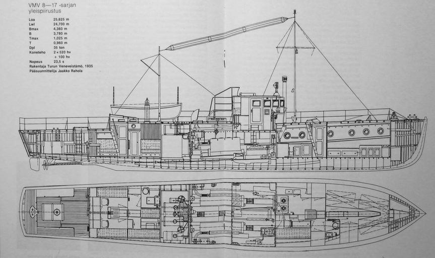 Keywords: Vartiomoottorivene sarja 8-17.JPG fi Vartiomoottorivene 8-17 -sarjan yleispiirustus pääsuunnittelija Jaakko Rahola rakentaja Turun Veneveistämö 1935 fi Patrol vessel series 8-17 1935 VM 11 VM Entistämistoimikunta 1992<br> own photo Jaakko Rahola design Abc10 photo other versions PD-Old cc-by-sa-4 0 Ships built in Finland Naval ships of Finland Patrol vessels of Finland Uploaded with UploadWizard |