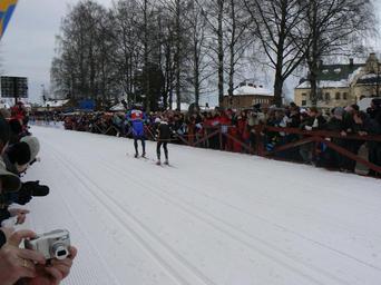 | Keywords: Vasaloppsduell2.JPG Skiers Oskar Svärd and Jerry Ahrlin fighting for the gold medal of Vasaloppet 2007 approaching the finish line in Mora Photo by Skvattram 2007-03-04 2007-03-04 own assumed Skvattram~commonswiki Vasaloppet 2007 2007 in Mora Cross-country skiers from Sweden Sportspeople from Sweden in 2007 Photographs taken on 2007-03-04 Cross-country skiers in 2007 |