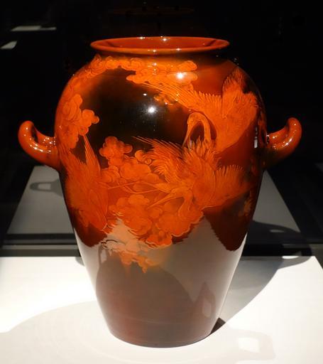 Keywords: Vase by Albert Robert Valentien, Rookwood Pottery Company, 1893, earthenware with mahogany glaze line - Cincinnati Art Museum - DSC03022.JPG en Exhibit in the Cincinnati Art Museum Cincinnati Ohio USA This artwork is in the public domain because the artist died more than 70 years ago Photography was permitted in the museum without restriction 2013-05-12 16 23 24 own Daderot cc-zero Uploaded with UploadWizard Albert Robert Valentien Rookwood pottery in the Cincinnati Art Museum |