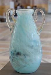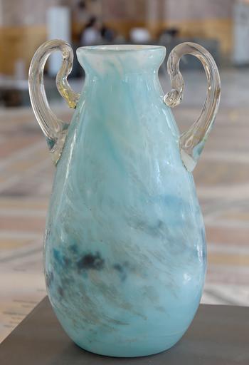 Keywords: Vase Marguerite Gallé Petit Palais OGAL00553 n2.jpg Vase with lilies and daises side B Study 4 for a vase commissioned by Countess Henri Greffulhe as a wedding gift for Princess Marguerite de Chartres hence the decoration of daisies marguerites in French The vase is inscripted with a quatrain by French poet Robert de Montesquiou cousin to the countess Multi-layered blown crystal with inclusions of glass and gold dust cabochons and handles added on and fused 1896 Vase aux lys et aux marguerites Étude n° 4 pour un vase commandé par la comtesse Henri Greffulhe comme cadeau de mariage pour la princesse Marguerite de Chartres d'où le décor de marguerites Un quatrain du poète français Robert de Montesquiou cousin de la comtesse est inscrit sur le vase cristal soufflé à plusieurs couches inclusions de verre et de poussiière d'or cabochons et anses rapportées à chaud H 35 cm 13 ¾ in W 16 cm 6 ¼ in Museum Petit Palais Room 1 Decorative arts in 1900 object history credit line Purchase 1932 accession number Inv OGAL00553 Jastrow 2006 other versions <gallery> Image Vase Marguerite Gallé Petit Palais OGAL00553 n1 jpg Side A </gallery> Glass vases Glassware by Émile Gallé Glassware in the Musée des Beaux-Arts de la Ville de Paris Glass art |