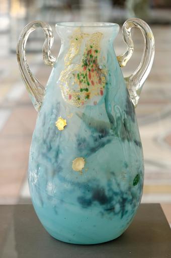 Keywords: Vase Marguerite Gallé Petit Palais OGAL00553 n1.jpg Vase with lilies and daises face A Study 4 for a vase commissioned by Countess Henri Greffulhe as a wedding gift for Princess Marguerite de Chartres hence the decoration of daisies marguerites in French The vase is inscripted with a quatrain by French poet Robert de Montesquiou cousin to the countess Multi-layered blown crystal with inclusions of glass and gold dust cabochons and handles added on and fused 1896 Vase aux lys et aux marguerites d'Émile Gallé Étude n° 4 pour un vase commandé par la comtesse Henri Greffulhe comme cadeau de mariage pour la princesse Marguerite de Chartres d'où le décor de marguerites Un quatrain du poète français Robert de Montesquiou cousin de la comtesse est inscrit sur le vase cristal soufflé à plusieurs couches inclusions de verre et de poussiière d'or cabochons et anses rapportées à chaud H 35 cm 13 ¾ in W 16 cm 6 ¼ in Museum Petit Palais Room 1 Decorative arts in 1900 object history credit line Purchase 1932 accession number Inv OGAL00553 Jastrow 2006 other versions <gallery> Image Vase Marguerite Gallé Petit Palais OGAL00553 n2 jpg Side B </gallery> Glass vases Glassware by Émile Gallé Glassware in the Musée des Beaux-Arts de la Ville de Paris Glass art