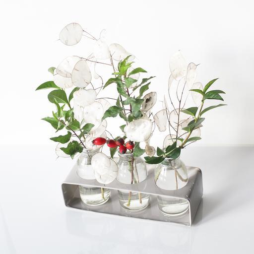 Keywords: vase red rose hip leaves green white silver leaf arrangement autumn