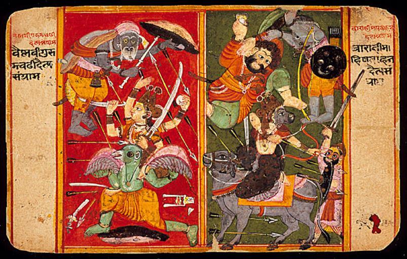| Keywords: Vashnavi varahi.jpg Vaishnavi and Varahi Fighting Asuras Recto Painting; Watercolor Opaque watercolor and ink on paper Image 5 1/8 x 6 3/8 in 13 01 x 16 19 cm ; Sheet 5 1/8 x 8 1/8 in 13 01 x 20 63 cm LACMA 1675-1700 Unknown Made in India Rajasthan Sirohi PD-old-100 Varahi LACMA jpg Vaishnavi Asuras Devi Mahatmya Rajasthan style Paintings from India in the Los Angeles County Museum of Art 17th-century watercolor paintings from India Watercolor paintings of people of India Paintings of Devi 17th-century paintings from India Watercolor paintings in the Los Angeles County Museum of Art Vashnavi Varahi Sirohi State |