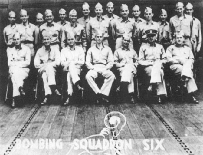 | Keywords: VB-6 June 1942.jpg A group photo of the pilots of United States Navy dive bomber squadron Bombing Squadron Six VB-6 photographed aboard the aircraft carrier USS Enterprise CV-6 on 3 June 1942 the day before the Battle of Midway Seated L-R Lt jg J Edward L Anderson Lt Harvey P Lanham Lt Lloyd A Smith XO Lt Richard H Best CO Lt Joe R Penland Lt Horace R Moorehead Jr A-V S ; Lt jg John J Van Buren Second row standing L-R all A-V N Ens Eugene A Greene Ens George H Goldsmith Ens Stephen C Hogan Jr Ens Norman F Vandivier Ens Don L Ely Lt jg Wilbur E Roberts Ens Lewis A Hopkins Lt jg Edwin J Kroeger Ens Delbert W Halsey Ens Frederick T Weber Ens Thomas W Ramsey Ens Tony F Schneider Ens Bertram S Varian Jr Ens Arthur L Raush Ens Harry W Liffner The photo was taken by US Navy photographer William T Barr http //lcweb2 loc gov/cocoon/vhp-stories/loc natlib afc2001001 10509/transcript ID sr0001 while acting in official duties The photo was uploaded from http //www cv6 org/noumea/default asp uri detail/barr-img-346 ref EAG+ 2D+Group+Photos USS Enterprise commemorative site Photo caption information was taken from the book Cressman Robert J et al A Glorious Page in our History 1990 Pictorial Histories Publishing Company Inc Missoula MT p 103 PD-USGov-Military-Navy Aboard USS Enterprise CV-6 Battle of Midway US forces United States naval aviators |