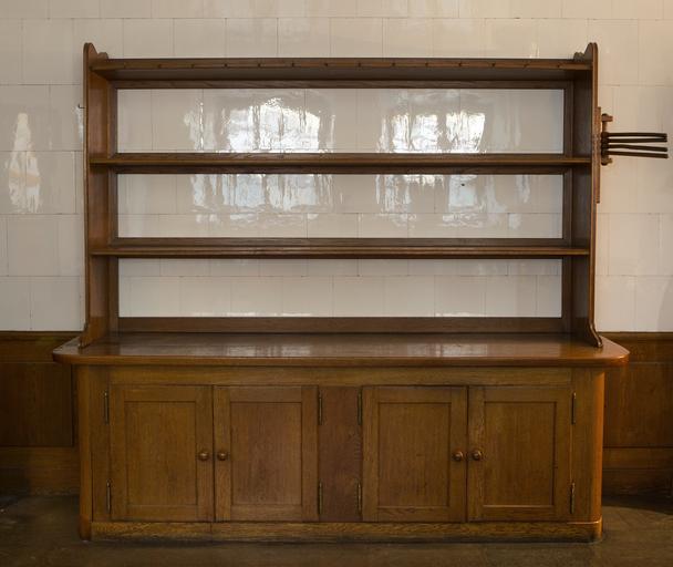 | Keywords: Vedlår och kärlhylla med handdukshängar - Hallwylska museet - 108954.tif Carl Hermann Benckert J r Edward Johansson snickare sv VEDLÅR och KÄRLHYLLA med handdukshängare Av ek något betsade och bonade Vedlår Avlång med rundade framhörn samt utan rygg och botten Med skiva och två par dörrar Skiva tjock med brett utsprång och rak kant Innanför vartdera dörrparet en halvhög balk med bågformigt nedsvängd överkant skodd med mässingsplåt Mått H 81; L 239; Dj 65 cm Kärlhylla ovanpå vedlåren Av samma längd som vedlårens liv samt med två sidostycken och tre hyllor Kärlhyllan fäst vid vedlåren medelst två tappar i vartdera sidostyckets nedre ände Mått H 131; L 221; Dj 33 cm Handdukshängare upptill på högra sidostycket utsida Bestående av sex rakt utstående runda pinnar varje med inre änden fäst vid en stavformig muff trädd på en vertikalt ställd axel varpå pinnarna är svängbara Mått L 45 cm Vedlår/kärlhylla förfärdigad efter beställning hos snickaren Edvard Johansson 1912 Handdukshängare förfärdigad efter beställning hos snickaren C H Benckert J r 1899 original caption Vedlår och kärlhylla med handdukshängar <br/> Nyckelord Kök Hylla Handukshängare Köksmöbel Vedlår 1899; 1912 oak size cm 81 vedlår size cm 65 vedlår size cm 131 kärlhylla size cm 45 handdukshängare size cm 221 kärlhylla size cm 239 vedlår size cm 33 kärlhylla HWY place of origin Stockholm SE original filename hm_dig21734 10974 inventory number HWY III I A d 01 108954 CC-BY-SA Jenny Bergensten Kitchen utensils Furniture Shelves Jenny Bergensten Media contributed by LSH dim-with multiple size templates Media contributed by LSH unmatched creator Media contributed by LSH unmatched keyword Media contributed by LSH 2016-12 |