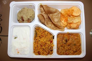 Keywords: Veg Mini Meals in Tamil Nadu.JPG en Veg Mini Meals in Tamil Nadu served with Sambar rice Tamarind rice Curd rice Sweet Pongal Chappathi with gravy and chips 2014-11-22 13 41 45 own KARTY JazZ other versions cc-by-sa-4 0 Uploaded with UploadWizard Public domain Cuisine of Tamil Nadu |
