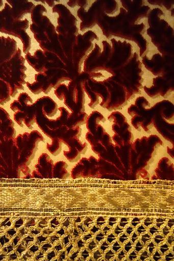 | Keywords: Velvet altar frontal, 17th century, Ligurian, view 2, from the Cathedral of San Lorenzo - Museo Diocesano (Genoa) - DSC01855.JPG en Exhibit in Museo Diocesano Via Tommaso Reggio 20 r Genoa Italy All artwork in this museum is old enough so that it is in the public domain Photography was permitted in the museum without restriction 2013-09-25 10 38 31 own Daderot cc-zero Textiles in the Museo Diocesano Genoa Uploaded with UploadWizard Silk velvet | ||||