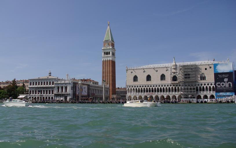 Keywords: Venezia Campanile di San Marco 002.JPG Markusturm und Dogenpalast in Venedig own Janericloebe 2009-08 Doge's Palace and campanile of St Mark's Basilica facing the sea