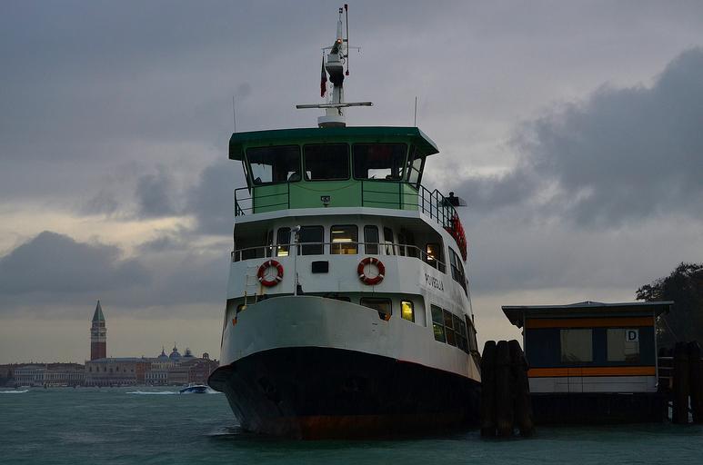 Keywords: venice italy channel river tram river pier water sky clouds pamurno ship tower city bay belfry