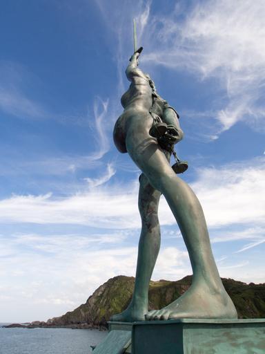 | Keywords: verity stainless steel stainlesssteel bronze statue bronzestatue damien hirst damienhirst sculpture pier harbour ilfracombe devon bristol channel truth modern allegory truth and justice truthandjustice pregnant woman pregnant woman pregnantwoman fetus scales of justice scalesofjustice little dancer littledancer edgar degas edgardegas virgin mother virginmother pangolin polymer-strengthened fibre glass polymerstrengthenedfibreglass fibre glass fibreglass angel of the north angelofthenorth controversial critical ugly outdoor statue sport jump Verity is a stainless steel and bronze statue created by Damien Hirst. The 20.25-metre (66.4 ft) tall sculpture stands on the pier at the entrance to the harbour in Ilfracombe, Devon, looking out over the Bristol Channel towards South Wales. It has been loaned to the town for 20 years. The name of the piece refers to "truth" and Hirst describes his work as a "modern allegory of truth and justice". The statue depicts a pregnant woman holding aloft a sword while carrying the scales of justice and standing on a pile of law books. Half of the sculpture shows the internal anatomy of the pregnant woman, with the fetus clearly visible. The stance has been described as a reference to Little Dancer of Fourteen Years by Edgar Degas, a work that previously inspired Hirst when he created Virgin Mother. The sculpture was cast in stainless steel and bronze in 40 separate sections by Pangolin Editions. The sword, which gives the statue much of its height, and the upper left arm is one polymer-strengthened fibre glass piece. Before being cleared for erection the statue was subjected to tests in a wind tunnel to ensure that it could cope with high winds and spray from the sea. Measuring 25cm (10 inches) higher than the Angel of the North, Verity became the tallest statue in the UK when it was put into place. Members of North Devon Council referred to the controversial nature of the statue as a potential boost to tourism. Local reaction was very mixed, with those critical of the work calling it "ugly" and stating that "it isn't suitable for a Victorian seaside town". Before they allowed planning permission the council received 100 letters from people who objected to the installation of the statue, and 177 letters supporting the application. In August 2013 councillors announced that the statue had a "tremendous effect" with people visiting the town solely to see Hirst's work. Hirst, who lives in Ilfracombe, has loaned the statue to the town for 20 years starting from its erection on 16 October 2012. Verity is a stainless steel and bronze statue created by Damien Hirst. The 20.25-metre (66.4 ft) tall sculpture stands on the pier at the entrance to the harbour in Ilfracombe, Devon, looking out over the Bristol Channel towards South Wales. It has been loaned to the town for 20 years. The name of the piece refers to "truth" and Hirst describes his work as a "modern allegory of truth and justice". The statue depicts a pregnant woman holding aloft a sword while carrying the scales of justice and standing on a pile of law books. Half of the sculpture shows the internal anatomy of the pregnant woman, with the fetus clearly visible. The stance has been described as a reference to Little Dancer of Fourteen Years by Edgar Degas, a work that previously inspired Hirst when he created Virgin Mother. The sculpture was cast in stainless steel and bronze in 40 separate sections by Pangolin Editions. The sword, which gives the statue much of its height, and the upper left arm is one polymer-strengthened fibre glass piece. Before being cleared for erection the statue was subjected to tests in a wind tunnel to ensure that it could cope with high winds and spray from the sea. Measuring 25cm (10 inches) higher than the Angel of the North, Verity became the tallest statue in the UK when it was put into place. Members of North Devon Council referred to the controversial nature of the statue as a potential boost to tourism. Local reaction was very mixed, with those critical of the work calling it "ugly" and stating that "it isn't suitable for a Victorian seaside town". Before they allowed planning permission the council received 100 letters from people who objected to the installation of the statue, and 177 letters supporting the application. In August 2013 councillors announced that the statue had a "tremendous effect" with people visiting the town solely to see Hirst's work. Hirst, who lives in Ilfracombe, has loaned the statue to the town for 20 years starting from its erection on 16 October 2012. |