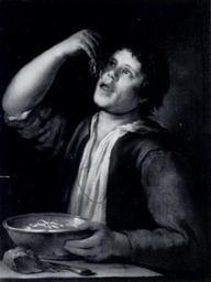 Keywords: Vermeer van Utrecht Man eating noodels.JPG Artwork Creator Jan Vermeer van Utrecht 1656 oil canvas cm 93 5 72 Institution National Museum Warsaw accession number object history credit line One of Vermeer's ironies painted in a Caravaggesque style p 38 Jonathan Bikker 2005 Willem Drost 1633-1659 A Rembrandt Pupil In Amsterdam And Venice Yale University Press ISBN 03-00105-81-9 See below PD-old-100 DEFAULTSORT 1656; Man eating noodels Jan Vermeer van Utrecht Paintings by Jan Vermeer van Utrecht in the National Museum in Warsaw 1656 paintings 17th-century oil paintings of men at half length Black and white reproductions of paintings in color Men facing left in art Noodles in art People eating noodles |