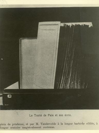 | Keywords: versailles peace treaty monochrome Local Accession Number: 197 Description: French newspaper photograph of the draft of the peace treaty and its box. Photographer: Unknown Source: Unknown Size: 8x10 Medium: Print, Black and White Date: 1919? Local Accession Number: 197 Description: French newspaper photograph of the draft of the peace treaty and its box. Photographer: Unknown Source: Unknown Size: 8x10 Medium: Print, Black and White Date: 1919? | ||||