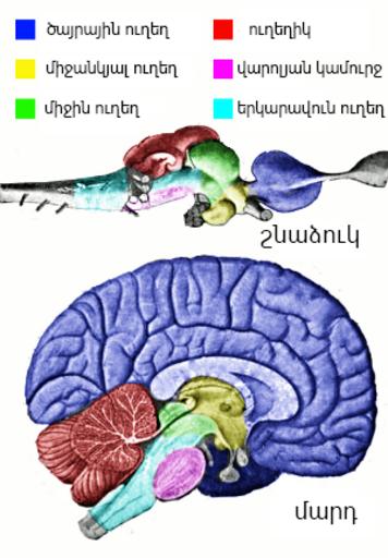 | Keywords: Vertebrate-brain-regions small hy.png en Main regions of the vertebrate brain shown for a shark and a human brain the human brain is sliced along the midline The two brains are not on the same scale in Armenian 2016-10-31 14 48 44 File Vertebrate-brain-regions_small png User Looie496 other versions cc-zero Anatomical plates and drawings of the human brain Animal brain comparisons Human brain sagittal section Shark brains | ||||