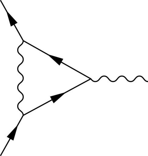 | Keywords: Vertex correction.svg vertex correction in QED This is the one-loop correction to the vertex function Γ in QED It leads to among other things a shift of the electron magnetic moment from 2 to 2 0023 Reworked into SVG from PNG illustration by User Phys User Harmaa 2007-03-26 Feynman diagrams Quantum electrodynamics |