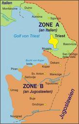 Keywords: Vertrag von Osimo.png Karte mit Darstellung der Aufteilung des Freien Territoriums Triest 1947-1953 zwischen Italien und Jugoslawien wie im Vertrag von Osimo 1975 vereinbart auf Deutsch Map of the partition of the Free Territory of Trieste 1947-1954 between Italy and Yugoslavia as fixed by the Treaty of Osimo 1975 in German Own adaptation of http //sl wikipedia org/wiki/Slika STO png from the Slovene Wikipedia by kind permission of the original author Carta della partizione del Territorio libero di Trieste 1947-1954 fissata nel Trattato di Osimo 1975 in italiano Italian version Image Trattato_di_Osimo png Maps of the Free Territory of Trieste 1975 |