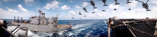 | Keywords: VERTREP Composite Pano.jpg en 040501-N-9851B-003 Atlantic Coast May 1 2004 - An MH-60S Knighthawk helicopter assigned to the Dragon Whales of Helicopter Combat Support Squadron Eight HC-8 flies between USS Harry S Truman CVN 75 and the Military Sealift Command MSC ammunition ship USNS Mount Baker T-AE 34 carrying a load of bombs while conducting a vertical replenishment VERTREP This is a digital composite of several images to produce a panoramic view of the operation Truman is currently undergoing a Tailored Ship's Training Availability TSTA off the Atlantic coast U S Navy photo by Photographer's Mate 2nd Class John L Beeman RELEASED 040501-N-9851B-003 Navy http //www navy mil/view_image asp id 13859 U S Navy photo by Photographer's Mate 2nd Class John L Beeman 2004-05-01 assessments 1 _VERTREP Composite Pano 2 PD-USGov-Military-Navy MH-60S Seahawk Uploaded by raeky Vertical replenishment Aboard USS Harry S Truman CVN-75 USNS Mount Baker T-AE-34 Helicopter Combat Support Squadron 8 United States Navy |