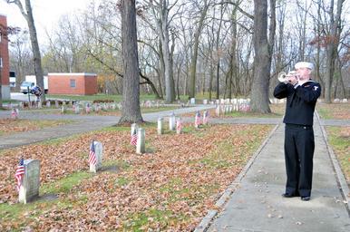 Keywords: Veterans Day wreath-laying ceremony 091110-N-IK959-464.jpg en U S Navy Musician 3rd Class Eric Nielsen plays taps during a Veterans Day wreath-laying ceremony at the U S Naval Cemetery on Naval Station Great Lakes Ill Nov 10 2009 U S Navy photo by Scott A Thornbloom/Released Unit Defense Imagery Management Operations Center DVIDS Tags Musician; DIMOC; USN; DVIDS Bulk Import 2009-11-09 Scottt Thornbloom https //www dvidshub net/image/1582748/veterans-day-wreath-laying-ceremony 091110-N-IK959-464 2014-10-06 00 04 NAVAL STATION GREAT LAKES IL US PD-USGov-Military-Navy Naval Station Great Lakes Veterans Day 2009 Images from DoD uploaded by Fæ |