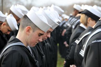 Keywords: Veterans Day wreath-laying ceremony 091110-N-IK959-415.jpg en U S Sailors with the Naval Hospital Corps School bow their heads for a moment of silence during a Veterans Day wreath-laying ceremony at the U S Naval Cemetery on Naval Station Great Lakes Ill Nov 10 2009 U S Navy photo by Scott A Thornbloom/Released Unit Defense Imagery Management Operations Center DVIDS Tags Formation; DIMOC; USN; DVIDS Bulk Import 2009-11-09 Scottt Thornbloom https //www dvidshub net/image/1582817/veterans-day-wreath-laying-ceremony 091110-N-IK959-415 2014-10-03 05 51 NAVAL STATION GREAT LAKES IL US PD-USGov-Military-Navy Naval Station Great Lakes Veterans Day 2009 Images from DoD uploaded by Fæ |