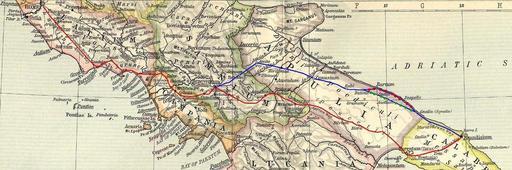 Keywords: Via Appia Via Traiana Costiera et Interna.jpg Ancient roman Appia road from a William R Shepherd 1911 map The original track is in red color In blue color a subsequent parallel track built under Traiano emperor and named Appia Traiana Via Traiana Costiera blue and red; Via Traiana Interna blue and green Via Appia Antica su mappa di William R Shepherd 1911 In colore rosso il tracciato originario in blu l'Appia Traiana Own work Based on William R Shepherd's PD map Fatta da me Basato sulla mappa PD di William R Shepherd 2008-03-07 EH101 PD-old Via Appia Antica Via Traiana 2 Maps of ancient Roman roads in Rome Via Appia 2 Maps of ancient Roman roads in Italy Old maps of ancient Roman roads |