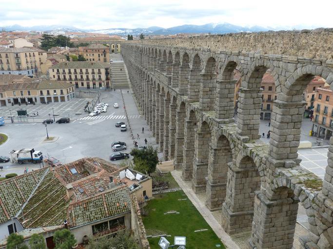 Keywords: viaduct segovia spain castile old town historically middle ages building unesco historical city centre unesco world heritage site world heritage aqueduct water water pipe antique antiquity romans roman arch bridge